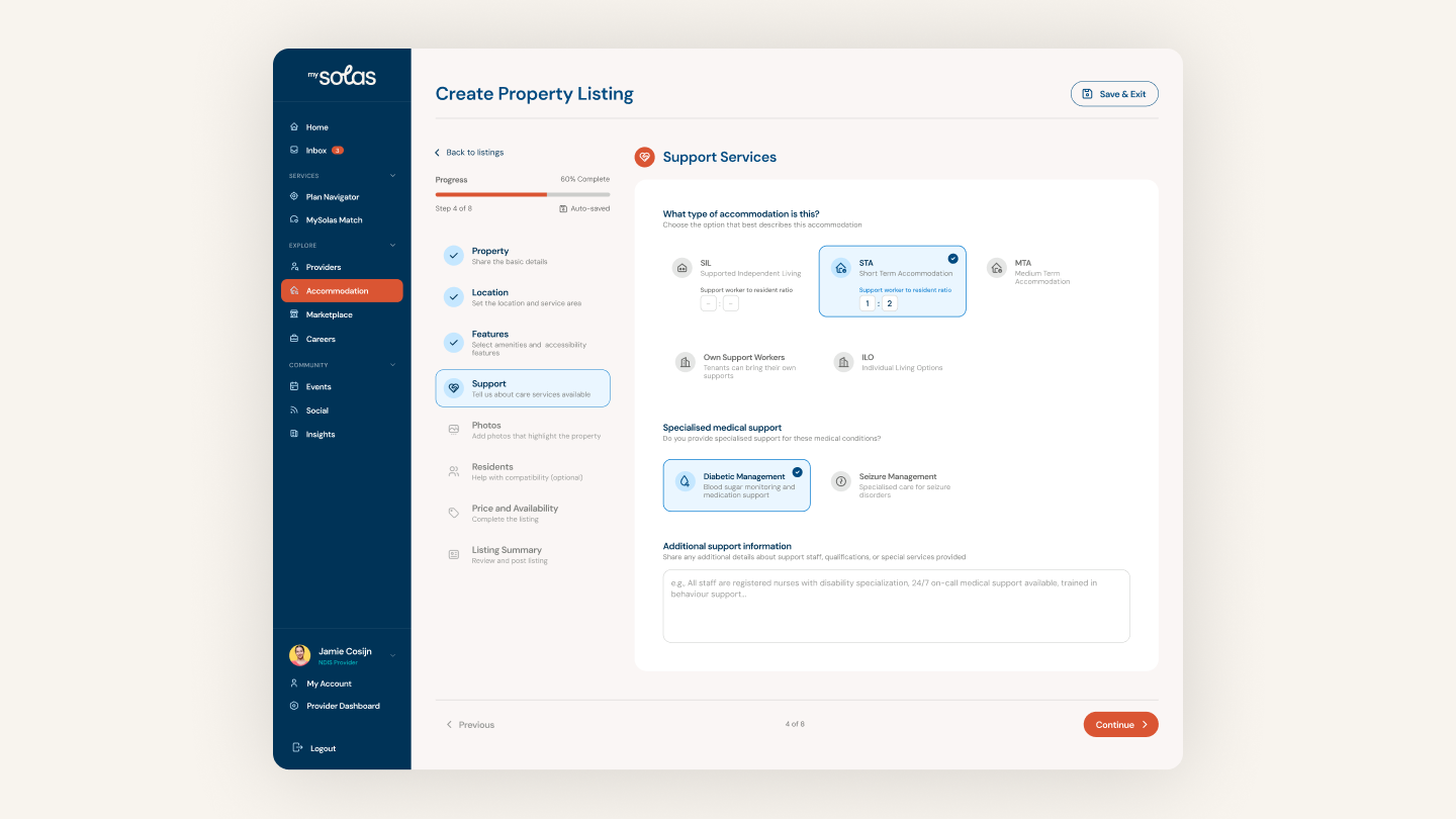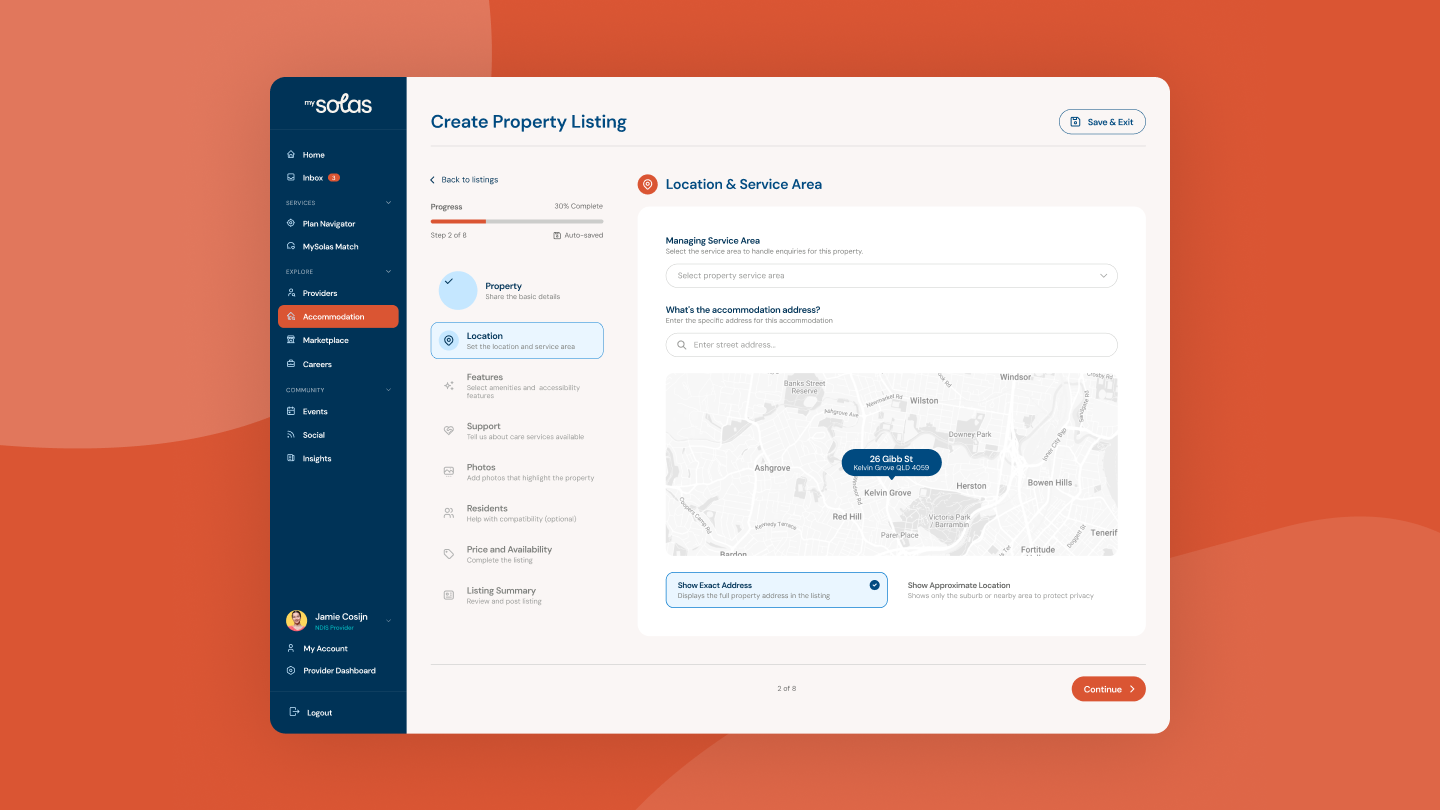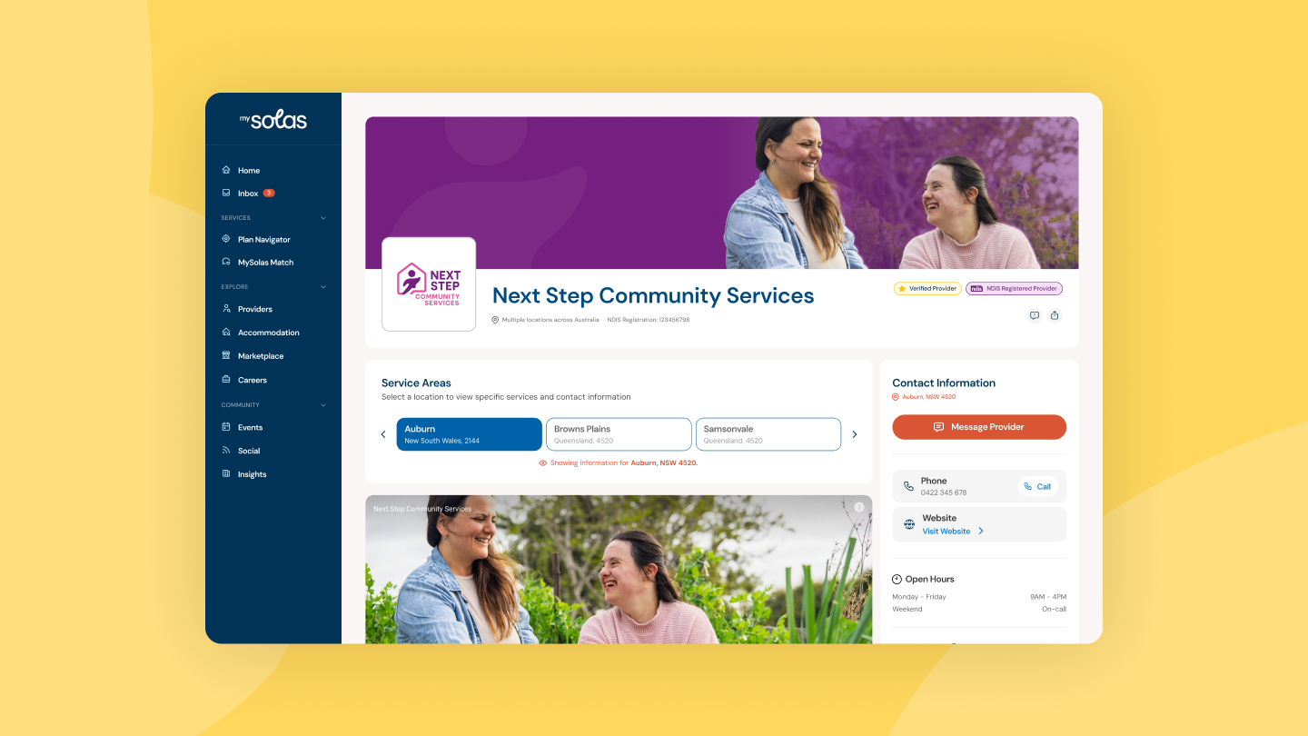MySolas isn’t just a directory — it’s a complete ecosystem. We worked with the team to expand the platform into new service areas, including NDIS accommodation listings and product and item directories, making it a go-to resource for participants, support coordinators, and families alike.